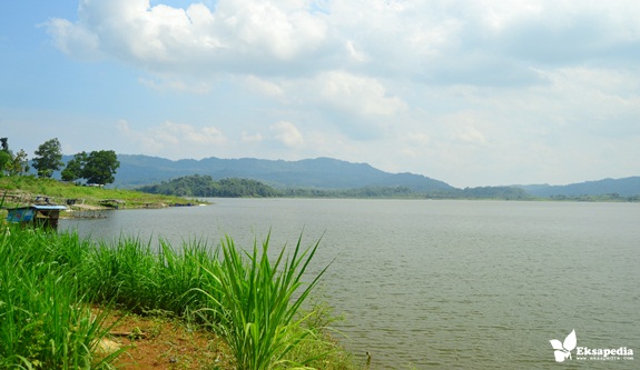 Di pintu gerbang tadi sekaligus kamu membayar tiket masuk sebesar Rp.4.000/ orang ditambah Rp.2.000/ parkir sepeda motor. Wah sangat terjangaku ya? Saat kami tiba disini sebenarnya si penjaga tiket sudah memperingatkan bahwa tebing batunya tertutup air, sehingga yang nampak ya hanya danau dengan bentangan air yang luas saja. Karena sudah susah payah jauh-jauh kemari tidak mungkin juga kan kalau harus putar balik.